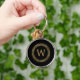 This elegant keychain features a faux gold foil frame in a classic Greek key pattern on a black background. Personalise it with your monogram initial in golden serif font.