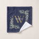 Gold Monogram Greenery Floral Navy Blue Bath Towel Set
