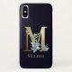 Gold Monogram Letter M Navy Blue Floral Name Case-Mate iPhone Case