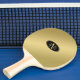 Gold monogram ping pong paddle with black rubber background or change to red if preferred. Gold printed graphic with black monogram oval and gold monogram that can be changed to a name or any text as preferred.