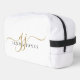Carry your style wherever you go with this elegant monogram dopp kit. Designed with graceful gold script initials paired with a refined serif name, it blends modern sophistication with everyday function. Perfect for carrying makeup, and other small items daily or for overnight stays. This versatile small accessory bag also makes a thoughtful choice for weddings, anniversaries, bridesmaids,housewarmings, or professional gifts.