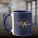 Classic navy blue and gold monogram mug. You can personalise the name, monogram and customise the font and colours to create your own unique design. Designed by Thisisnotme©