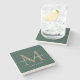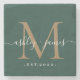 Gold Monogram Script Names Wedding Date Dark Green Stone Coaster
