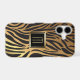 This elegant phone case gives a modern look to the traditional tiger stripe pattern in black on a burnished gold background. Your monogram is in gold at the centre of a black square banner which is double lined in shiny gold. Classy and timeless! Thanks to www.ephrazydesign.etsy.com for graphics used in this design.