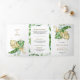 Gold Monstera Tropical Palm QR Code Wedding Tri-Fold Invitation
