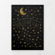 Gold Moon and Stars, 3 Photo Collage Baby Birth Tri-Fold Announcement