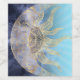 A whimsical, mystic universe nebula gold crescent moon and wavy rays sun mandala celestial design, featuring a crescent stage glowing moon with mandala flowers and night dark blue nebula galaxy stars, dots, circles geometric shapes, mermaid scale, and wavy rays sun mandala, floral and leaves doodling art, made with a faux yellow gold texture, and daylight sky blue background. This beautiful, mystical, cute moon, and sun henna mandala style universe theme, original artwork is perfect for home decor, everyday wear, special occasion, or theme decorations.