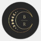 Seal your celestial theme with the "Gold Moon Wedding Classic Round Sticker," against a chic black background. The golden crescent moon and stars, complemented by the stylishly simple customisable initials of the couple, become an enchanting emblem. Moon phases delicately incorporated add a layer of symbolism, making these stickers more than just decorative seals.