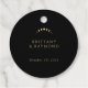 Add a touch of celestial charm to your favours with the "Gold Moon Wedding Favour Tags," against an elegant black backdrop. The golden crescent moon and stars, paired with the stylishly simple customisable initials of the couple, infuse a sense of magic. Moon phases delicately incorporated add depth, symbolising the everlasting connection between you and your guests.