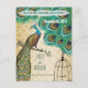 Playbill Font Vintage Peacock on a tree branch with loads of feathers on a Gold Moroccan tile pattern with a whimsical birdcage and teal hearts and playbill vintage fonts - see more vintage peacock bird products