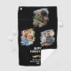 Funny Gold Moustache Happy Father's Day 3 Photo Golf Towel. Cute personalised photo golf towel with golden moustache and Happy Father's Day. Add your family photos. A sweet and fun photo sports gift and keepsake for sporty dad for Father`s Day.