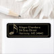 Beveled gold sixteenth music note on a black background with a simple gold border. Great for music lovers.