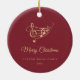 This musical Christmas ornament features a wavy stave with music notes and a treble clef in faux gold on a red background, accompanied by "Merry Christmas" in elegant script typography. Ideal for professional music ensembles, singers, choirs, chamber music groups, bands and orchestras . Personalize it with your own text, and take advantage of the editing tool to fine-tune the font size and placement.