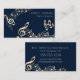 This stylish business card features a musical theme. Gold sheet music notes are whimsically placed across a navy blue background. It's a perfect for a professional musician, piano instructor, guitar teacher, or instrument store.