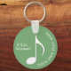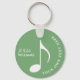 Graphic white musical note on a (custom colour) greenish-keychain, personalised with her name and text