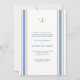 Simple yet classic, this vertical format wedding invitation features a small ship's anchor and two letter couple's monogram centred between two matching stripes of navy blue with golden accents. The text wording is formal but can be easily edited to better suit your event's vibe making this wedding invitation an excellent choice for a yacht club or seaside setting that gives an elegant nod to a nautical theme without feeling cliché.