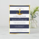 Gold Nautical Anchor Navy Blue & White Wedding Invitation
