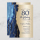 Gold Navy Blue Agate 80th Birthday Invitation