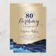 Gold Navy Blue Agate Marble 80th Birthday Invitation