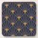 Gold Navy Blue Art Deco Fan Pattern Coaster