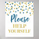 Gold Navy Blue Confetti Please Help Yourself Sign