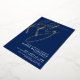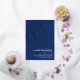 The party details are arranged neatly at the bottom left in classic white serif fonts, keeping the layout minimal and refined. The back side is solid white for a clean, polished finish. All colours and foil options can be customised to match your personal style or party theme.