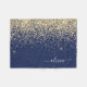 Gold Navy Blue Girly Glitter Sparkle Monogram Name Fleece Blanket