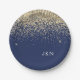 Gold Navy Blue Girly Glitter Sparkle Monogram Name Paper Plate