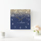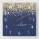 Gold Navy Blue Glitter Script Monogram Girly Name Square Wall Clock