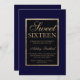 Gold navy blue modern elegant chic Sweet 16 Invitation