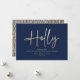 Gold navy blue modern minimal script elegant holiday card