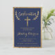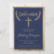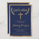 Faux gold foil typography elegant navy blue with gold cross confirmation with a geometric gold border. A modern baptism party invitation with this modern, simple, elegant and chic faux yellow gold brush hand lettering typography on a navy blue background. Perfect for simple, elegant and modern party. If you need any text changed and customised don't hesitate in contacting me!