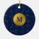 Gold & Navy Blue Zodiac Constellations Monogram Ceramic Ornament