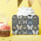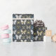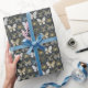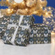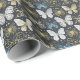 This wrapping paper features a butterflies with gold accents against a navy background.