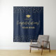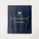 This modern tapestry is perfect for a chic navy blue and gold colour theme graduation party. Perfect photo backdrop to remember your special day. The design features golden typography " Congratulations! " and a graduation cap with confetti background. You can personalise the text. If you need a custom design, please contact me via email [barabomdesign@gmail.com] Thank you!