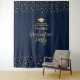 This modern tapestry is perfect for a chic navy blue and gold colour theme graduation party. Perfect photo backdrop to remember your special day. The design features golden typography " Graduation Party " and a graduation cap with confetti background. More graduation party decor and items are available at my shop BaraBomDesign.