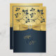This monogrammed gold and navy blue floral wedding invitation has a PRINTED ON gold ribbon and bow with a PRINTED gemstone and diamond jewels brooch on it. The text is all customisable. The paper type is also customisable. If you require any other items in this design, please email me with your request at niteowlstudio@gmail.com