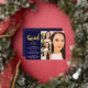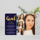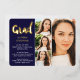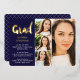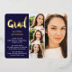 Modern simple real gold foil , navy blue Grad script 4 photos graduation announcement with photo booth style collage, with geometric dots pattern at the back, all the colours are editable.