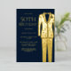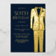 Gold & Navy Suit & Tie Mens 50th Birthday Party Foil Invitation