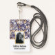 Gold Navy White Floral Leaf Illustration Pattern ID Badge