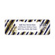 Gold, Navy, White Stripe return address labels with a diagonal stripe background, snowflakes of gold and silver, and a white frame where you can add your name and address before ordering. We have the matching envelopes and corporate Christmas party invitations.