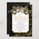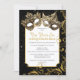 Celebrate New Year's Eve in style with a glamourous masquerade ball! This invitation features stunning gold masks, mesmerising gold swirls, and twinkling stars. Get ready to dance and celebrate the arrival of the new year in style!