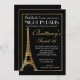 This Parisian Sweet 16 invitation featuring the Eiffel Tower with a gold glitter border is perfect for any Parisian themed party.