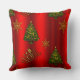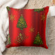 A very stylish red Christmas cushion with a pattern of traditional Christmas trees with decorations and tinsel. Surrounding the trees are gold Christmas stars and a very decorative golden Christmas ornament: the word Noel in (faux) gold metal. In the background is a dark red gradient pattern. This elegant and colourful Christmas pillow will definitely add a very classy touch to the Christmas decor these holidays.