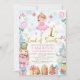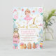 Sweet Nutcracker themed land of sweets birthday invitation featuring a nutcracker from the Nutcracker ballet, the Sugar Plum Fairy, mouse, a faux gold foil number one, some candy and more. This land of sweets first birthday invitation is a cute way to set the scene for a Nutcracker, land of sweets girl's first birthday party.