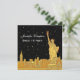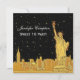 Elegant, stylish, chic customisable invitations and accessories with the New York City skyline, featuring a stylised gold shaded ESB, Chrysler Building, Statue of Liberty and more, shown on a black background (you can change the colour) under a starry sky.