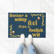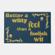 Welcome guests with a touch of elegance and wisdom using our 'Gold on Blue' door mat. Featuring the timeless quote 'Better a witty fool than a foolish wit' in luxurious gold against a sophisticated blue background, this durable mat adds both style and substance to your doorstep. Let it serve as a daily reminder to enter with wit and leave folly behind.