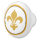 Gold on White Fleur de Lis Ceramic Knob
