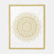 Gold ornate mandala pattern over white background.