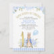 Gold One Blue Floral Peter Rabbit 1st Birthday Invitation